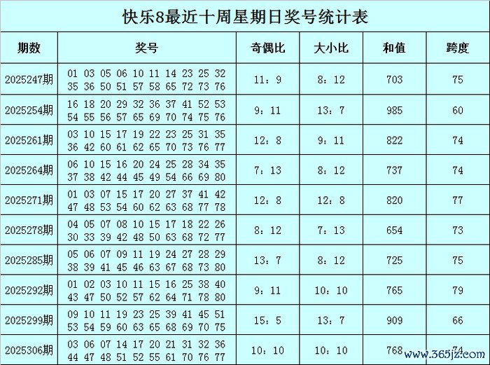 福彩繁盛8第2025306期(上周日)开奖总结:03 06 07 14 17 20 21 31 32 36 44 47 48 51 52 55 61 70 76 77,其中奖号和值为768,跨度为74,奇偶比为10:10,大小比为10:10。
